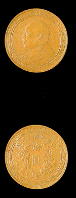 民国八年袁世凯像十元金币铜样,重4.5克。吴有源个人藏品。